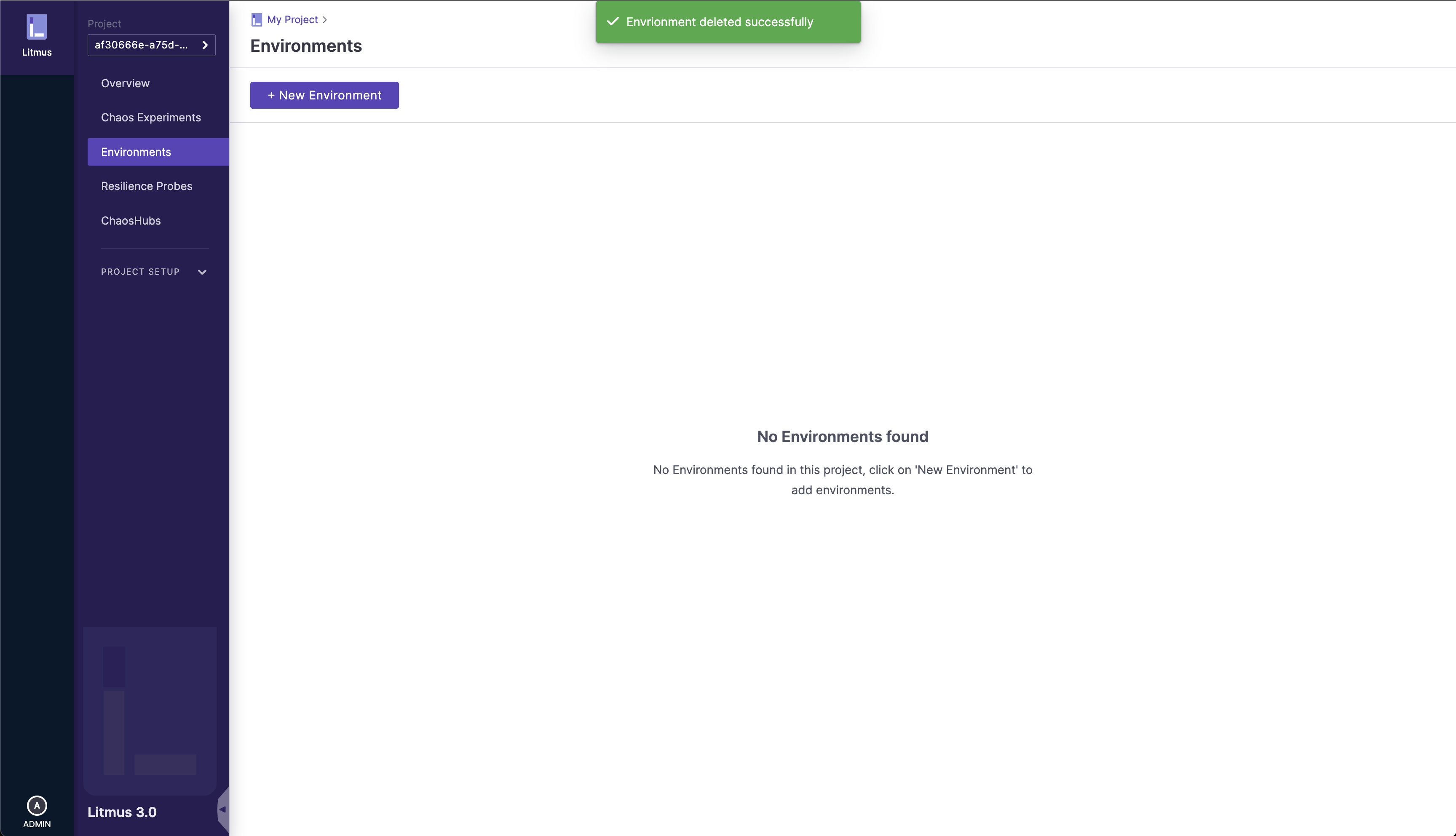 The deleted environment details will disappear from the list as shown: